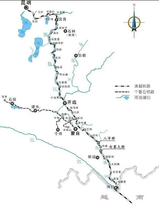Route Map of the Gejiu-Bisezhai-Shibing Railway and the Yunnan-Vietnam Railway
